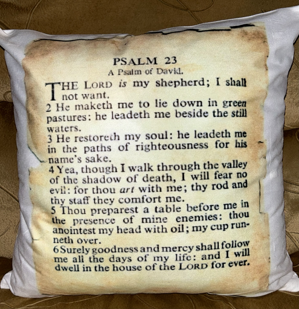 18x18 inch pillow printed with Psalms 23